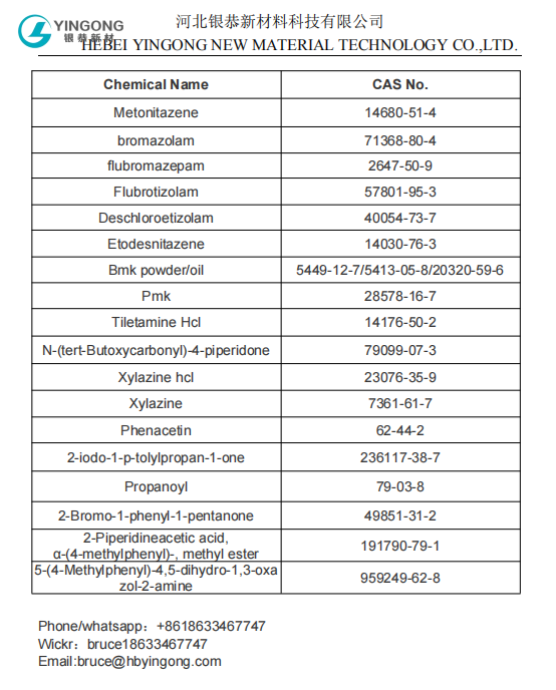 cas 33125-97-2 Etomidate cas 28578-16-7 cas 1451-82-7 cas 20320-59-6 cas 7361-61-7 cas 705-60-2 cas 8041-44-9