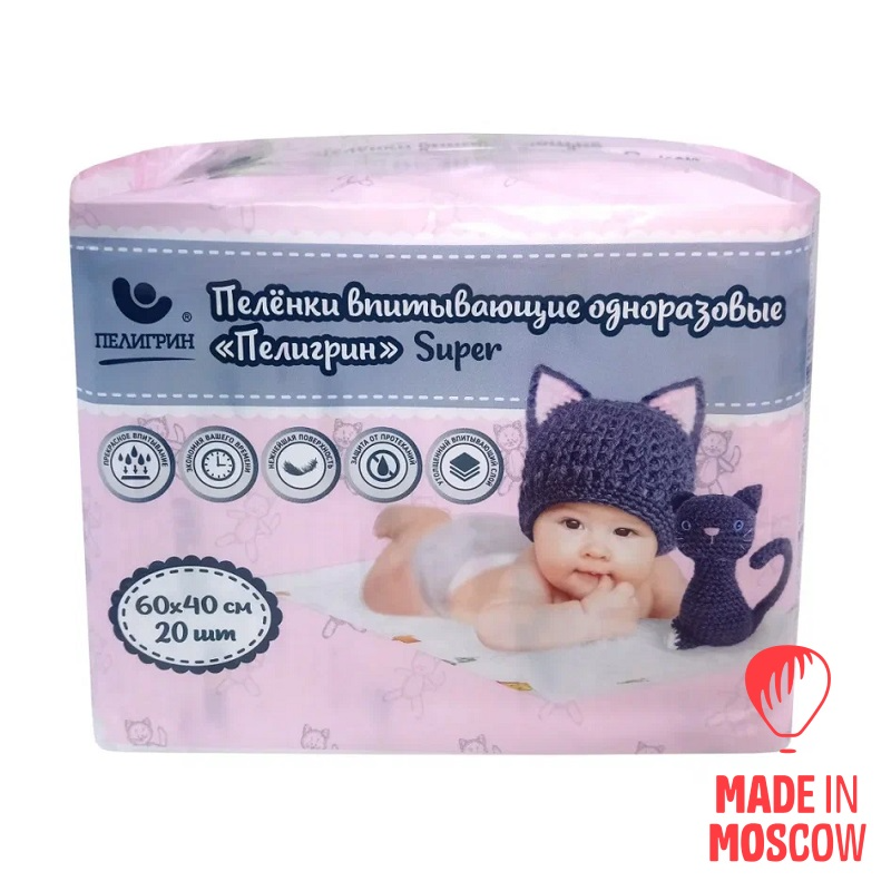 Disposable absorbent underpads of the Super series by Peligrin are perfectly suitable for baby’s skin. They absorb well and prevent any leakage, which means mothers can be sure that sofa, bed and swaddling table will be protected.