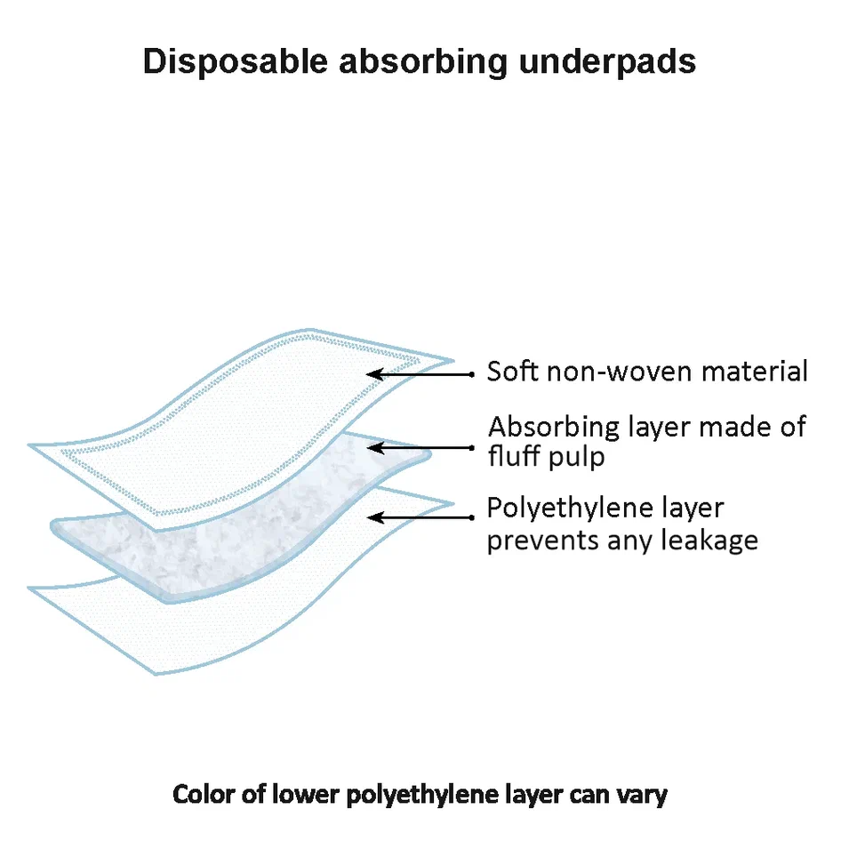 • The surface of the underpads that is made of high quality non-woven material quickly passes liquid to the inner layers of the product.
