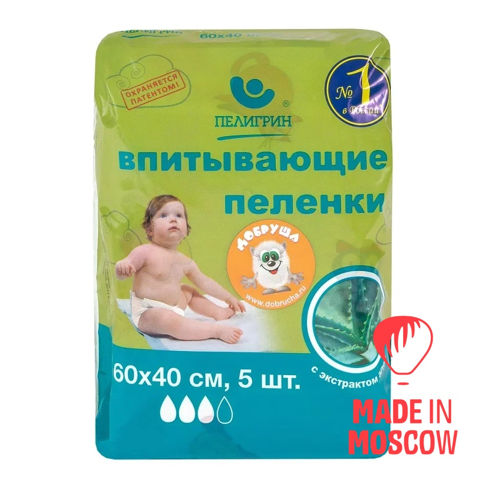 Disposable absorbent underpads with aloe extract by Peligrin are perfectly suitable for baby’s skin. They absorb well and prevent any leakage, which means mothers can be sure that sofa, bed and swaddling table will be protected.