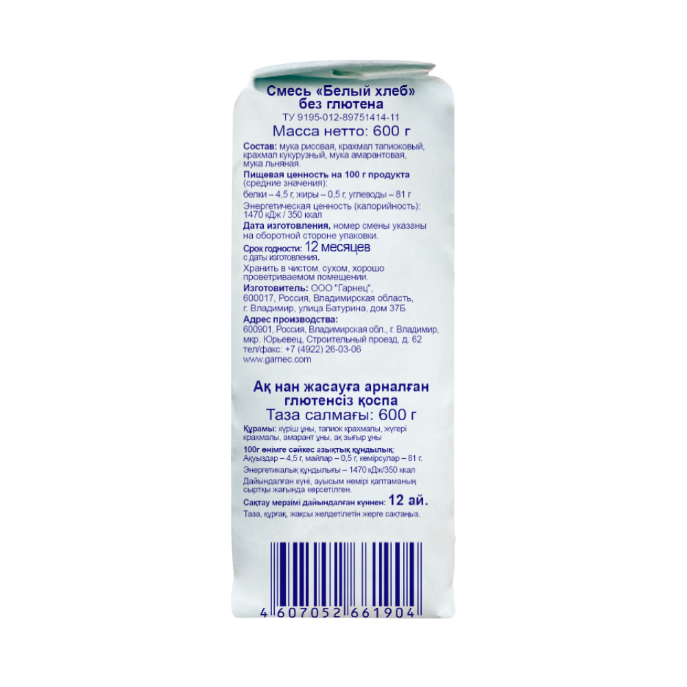 Flour mixture "White Bread" will allow you to bake the usual white bread, which will be not only homemade and very tasty, but also healthy. This product does not contain gluten. The absence of gluten is checked at each stage of production.