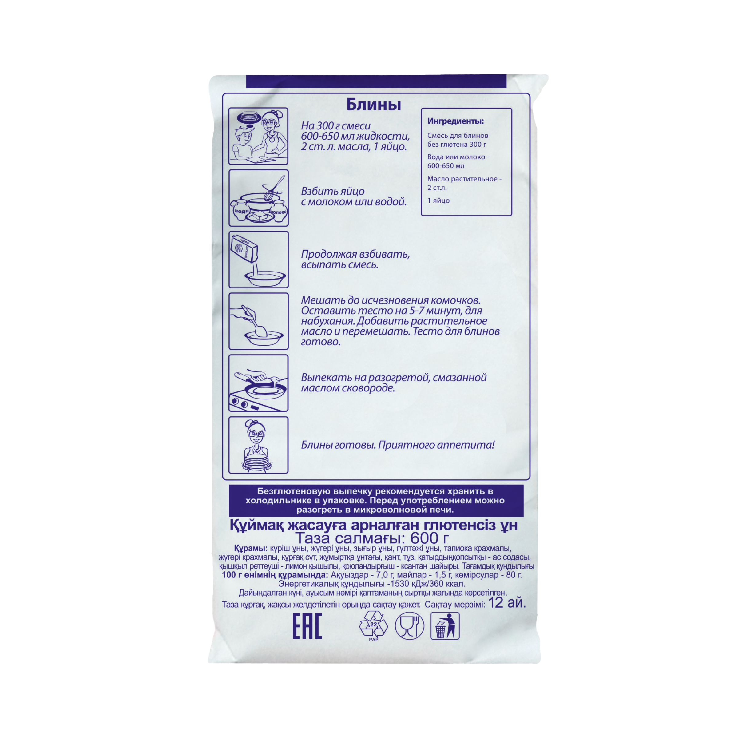 Pancakes, which you can prepare from this mixture, will turn out to be both deliciously tasty and healthy for health and figure. The flour mixture is specially designed for quick preparation of traditional pancakes of Russian national cuisine. This product does not contain gluten. The absence of gluten is checked at each stage of production.