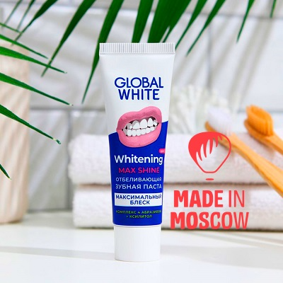 GLOBAL WHITE Whitening Toothpaste, a dental care masterpiece from Global Dent that transforms your oral hygiene routine! Specially formulated with a unique blend of gentle polishing abrasives, this whitening toothpaste offers exceptional smoothness and brightens tooth enamel, leading to a dazzling smile you can be proud of.