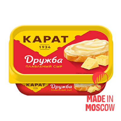 Processed cheese “Druzhba” from Karat, JSC, a beloved choice for cheese lovers seeking a blend of smooth texture and rich flavor. This exceptional processed cheese combines semi-hard varieties of cheese with creamy butter, fresh curd, and premium dry milk whey. The result is an exquisite cheese that is delightfully creamy, aromatic, and irresistibly delicious.