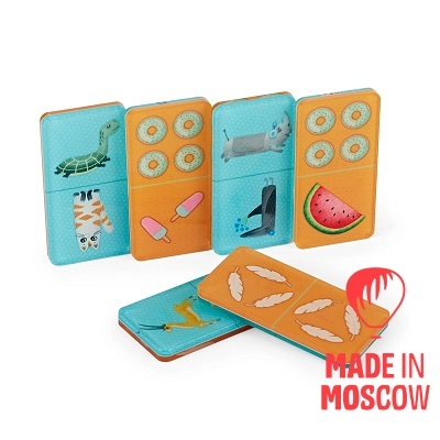 Accessories: memo game - 40 pieces; dominoes - 28 pieces; tumbling puzzles - 18 pieces