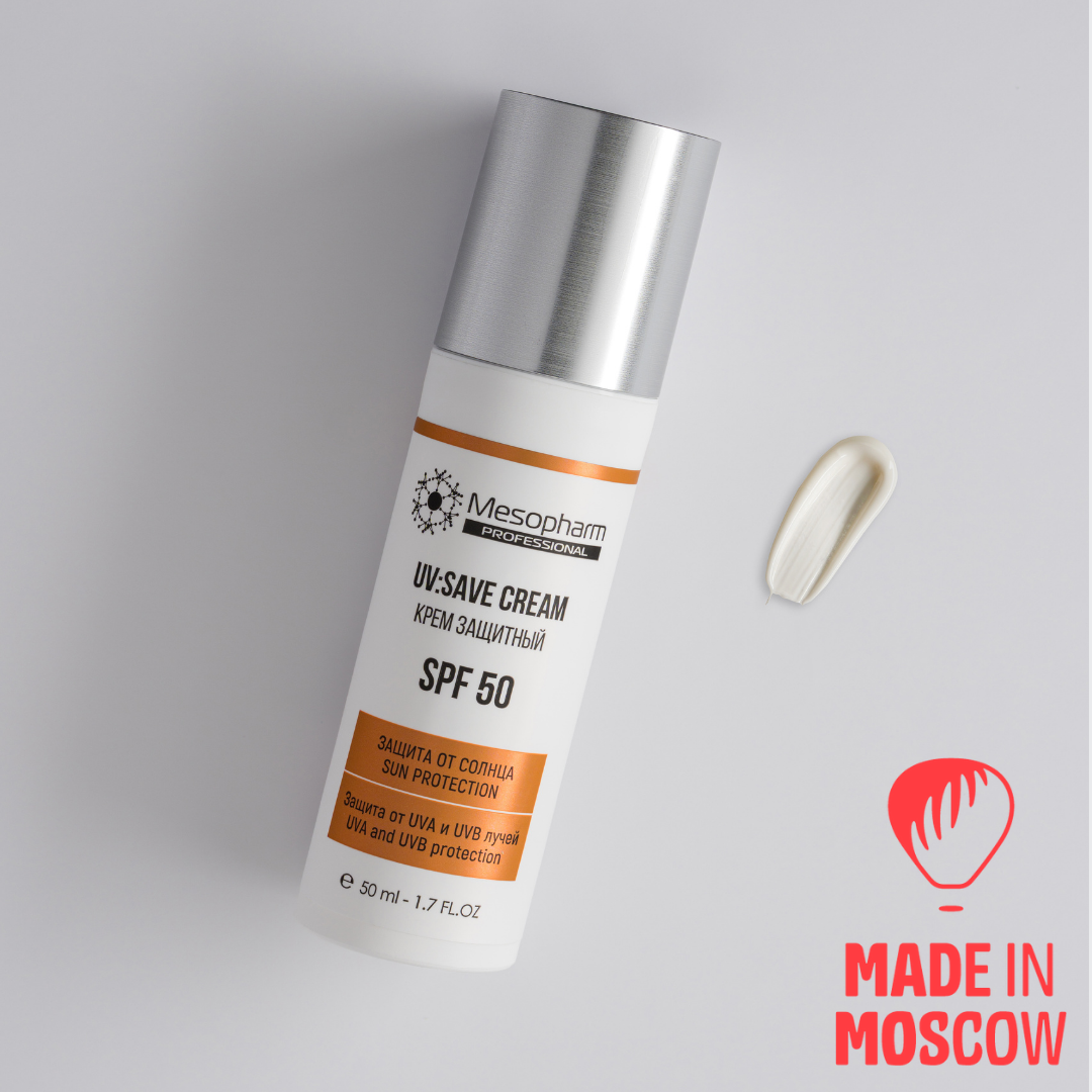 Protective cream UV:SAVE CREAM SPF 50 Volume: 50 mL Active ingredients: ectoin, tocopheryl acetate, citrus bioflavonoids, broccoli and aloe extract complex, lucerne extract. Effects: • protects cells from UV-induced damage and blue light • reduces melanin synthesis and prevents hyperpigmentation • effective for atopic dermatitis • activates the skin's own defence mechanisms • supports DNA repair processes Directions for use: Use daily as the final stage of your skincare routine and protection from sunlight. Apply on clean face and neck 15 minutes before going outside. In case of increased solar activity, reapply every 2-3 hours.