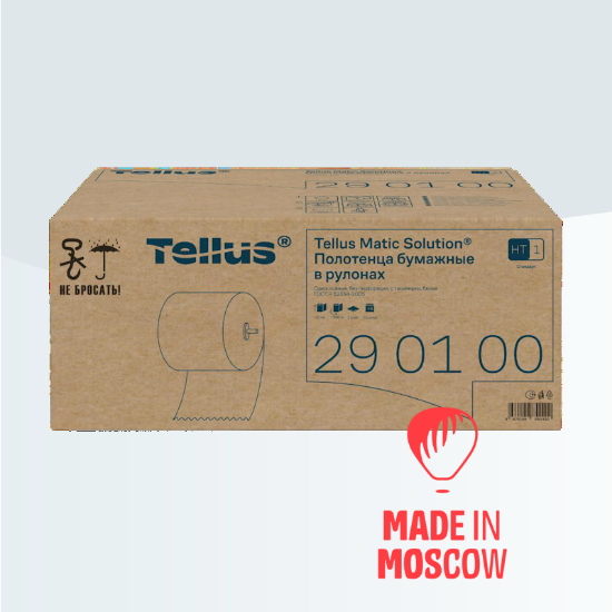The product is manufactured in Russia and distributed under the Tellus brand during the current transition period from Tork to Tellus, so customers may receive packaging in either trade mark while the quality and specifications remain unchanged. This continuity ensures that existing Matic H1 dispenser installations can continue operating without technical adjustments, with guaranteed compatibility and the same drying characteristics end users are accustomed to.