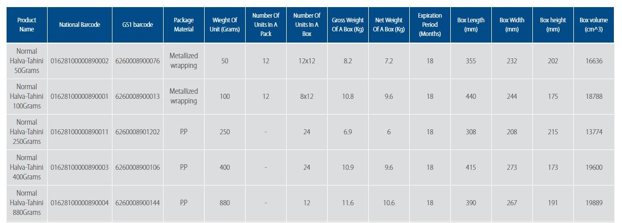 This product is made by mixing tahini with the syrup obtained from baking sugar and glucose which has been totally mixed after adding flavors like cardamom and vanilla and finally cooled down to make a threaded-like solid shape. Due to the fact that at least 50% of the weight of Halva-Tahini is Tahini (grinded sesame), This product has got all the valuable characteristics of this oily seed. This product, has all of these three energetic substances in a reasonable proportion which includes protein, fat and carbohydrate compounds and therefore is a valuable source of energy.