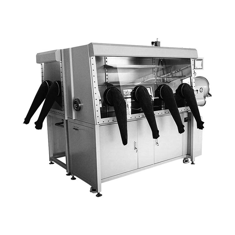 Working principle of circulating purification glove box: The box of the operation box and the gas circulation purification system constitute a tight working space. First, ** gas (such as argon or nitrogen) is introduced into the cabinet to drive away harmful components (such as oxygen molecules and water molecules) in the cabinet. This process is commonly known as "washing gas". The gas in the cabinet is further processed by a circulating purification system to remove traces of harmful components (such as water, oxygen, organic solvents and other active materials), so that the water and oxygen content in the operation box reaches 1 ppm or less.