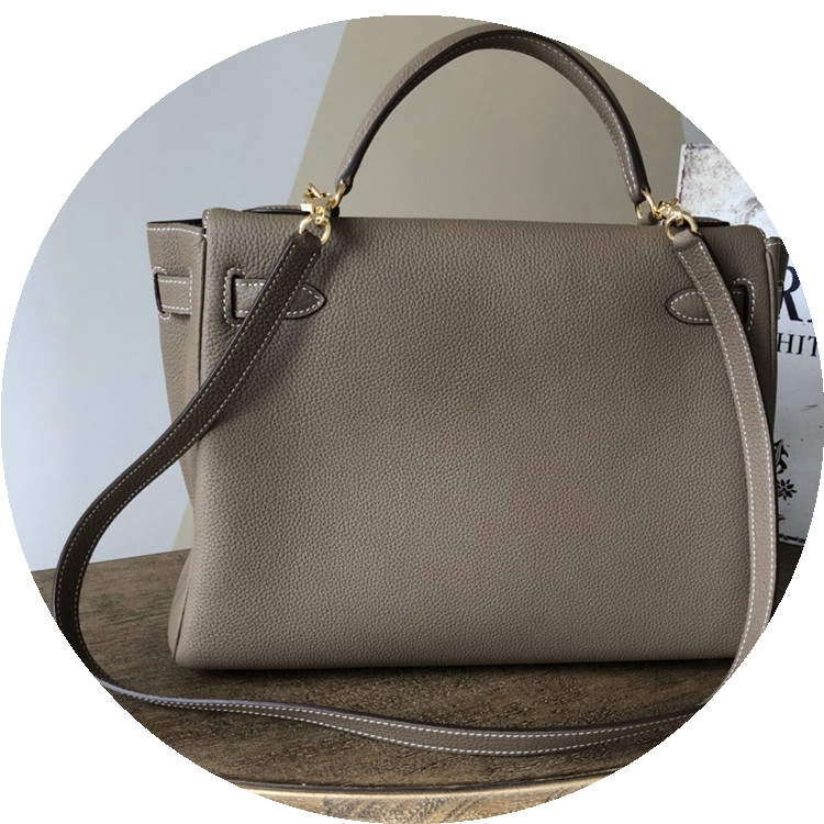 Litchi Pattern Togo Leather One Shoulder Messenger Kelly Bag Leather 25 28 32 Hand-Held Genuine Leather Women's Bag Lock Kelly