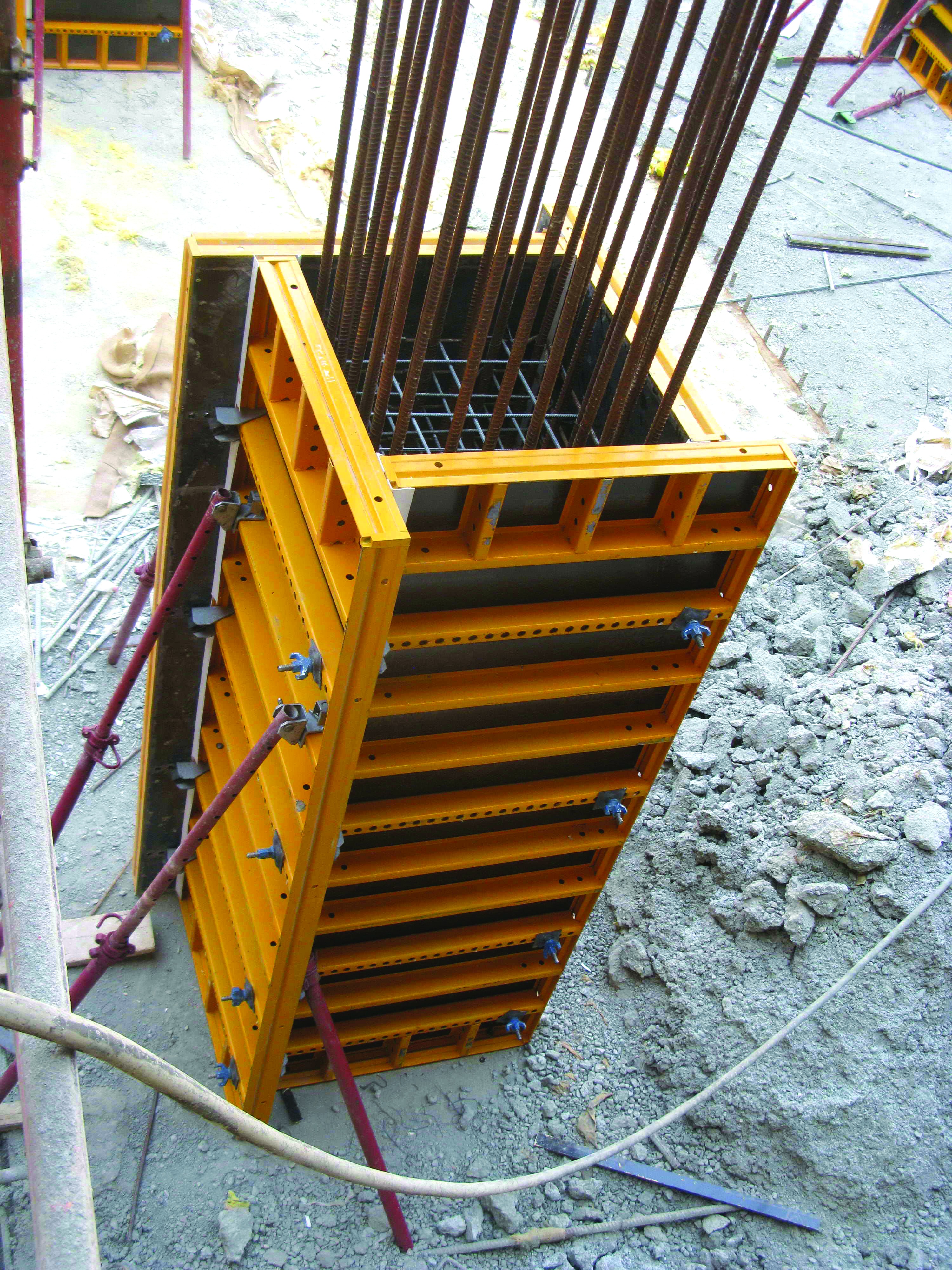در این سیستم جدید قالب بندی ستونهای با مقطع مربع مستطیل میتوان با یک ست قالب ستون بدون اضافه یا کم کردن قالبی، انواع مقاطع از(30*30) تا (100*100) سانتیمتر و یا حالتهای ترکیبی فرضاً(60*80)سانتیمتر را در هر فواصل 5 سانتیمتری بصورت کشویی وبا گوشه های تیز یا پخدار قالب بندی نمود.