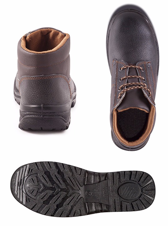 رویه کفش از چرم اشپالت 2میلی،سرپنجه آهنی با استاندارد ملی ایران مقاوم به 200 ژول ضربه پذیری،زیره پی یو،مقاومت زیره در برابر حلالهای نفتی و روغنی ،تاییده وزارت کار و امور اجتماعی، آستری راشل ،سایز بندی کفش استاندارد از 40-45