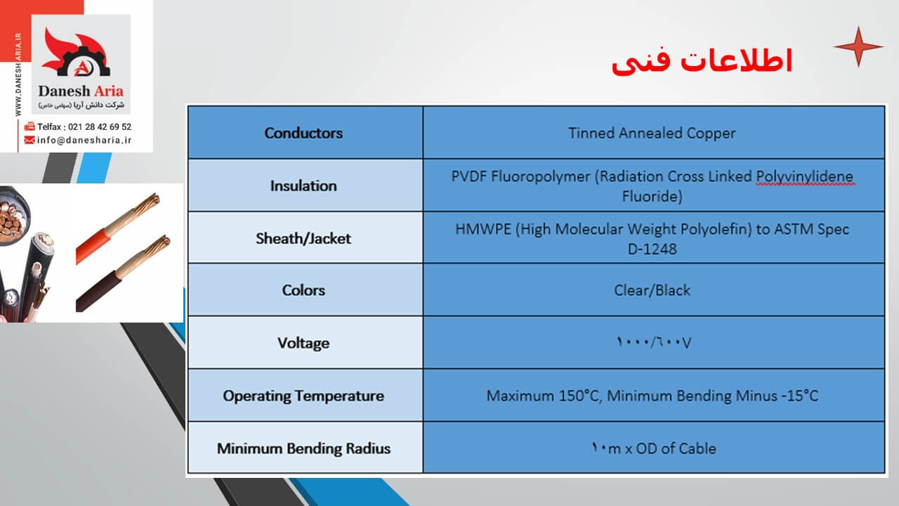 لازم به ذکر است که این کابل ها دارای مقاومت عالی به محیط های حاوی یون کلر و گاز H2S و نیز محیط حاوی گاز اکسیژن و کلر میباشند. برند تامینی شرکت دانش آریا برند اروپایی ozgoven (ترکیه ای) که به علت تحریم های موجود با نام تجاری demir در ایران شناخته میشود و قابلیت دریافت استعلام از شرکت اصلی ozgoven وجود دارد.