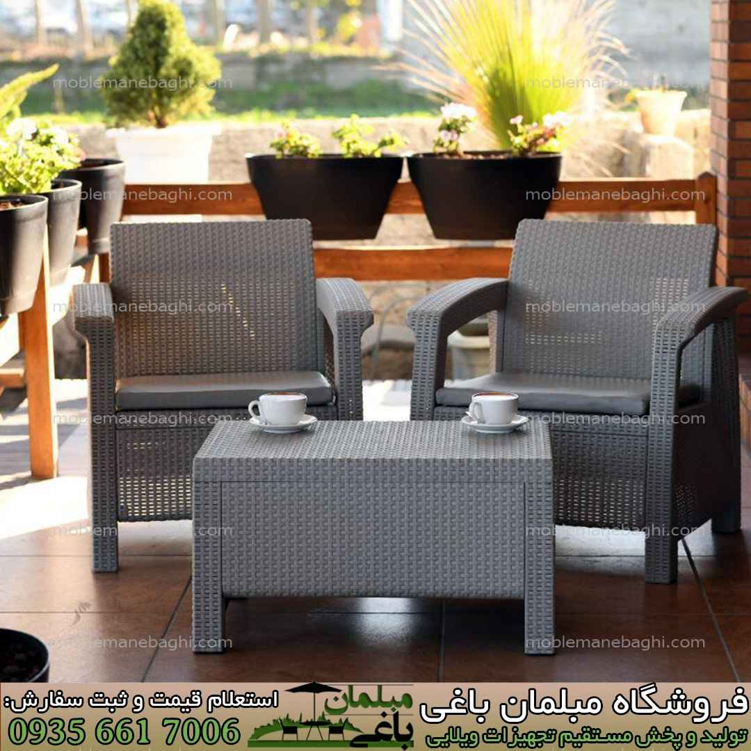 مبل حصیری پلیمری ساخته شده از پلیمر ویژه با طرح حصیری دارای طراحی مدرن،