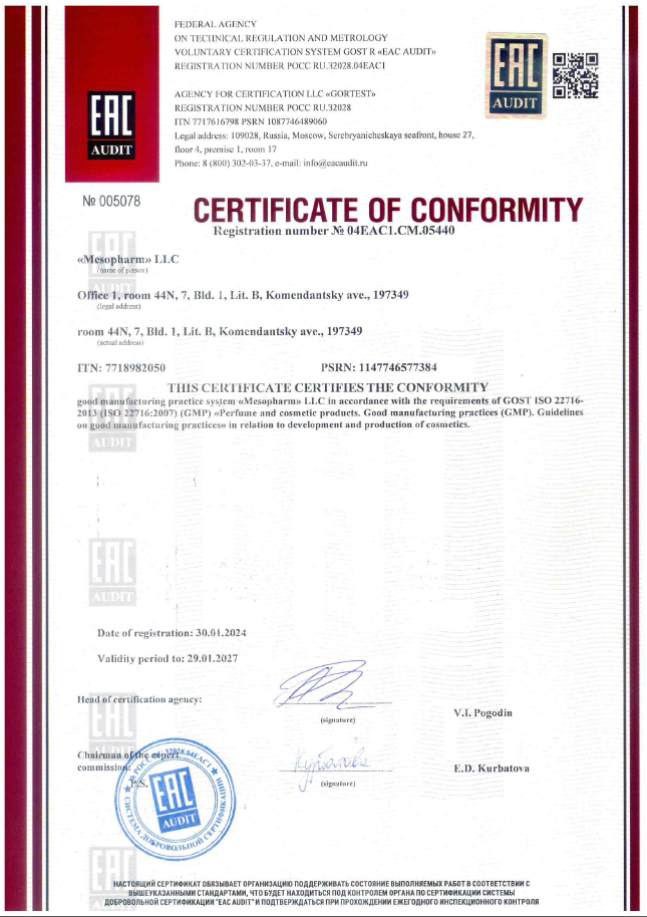 Founded in 2001, Mesopharm has been producing innovative products for aesthetic medicine and professional cosmetology for more than 20 years. At present, Mesopharm is one of the leading manufacturers in this sphere on the domestic market.