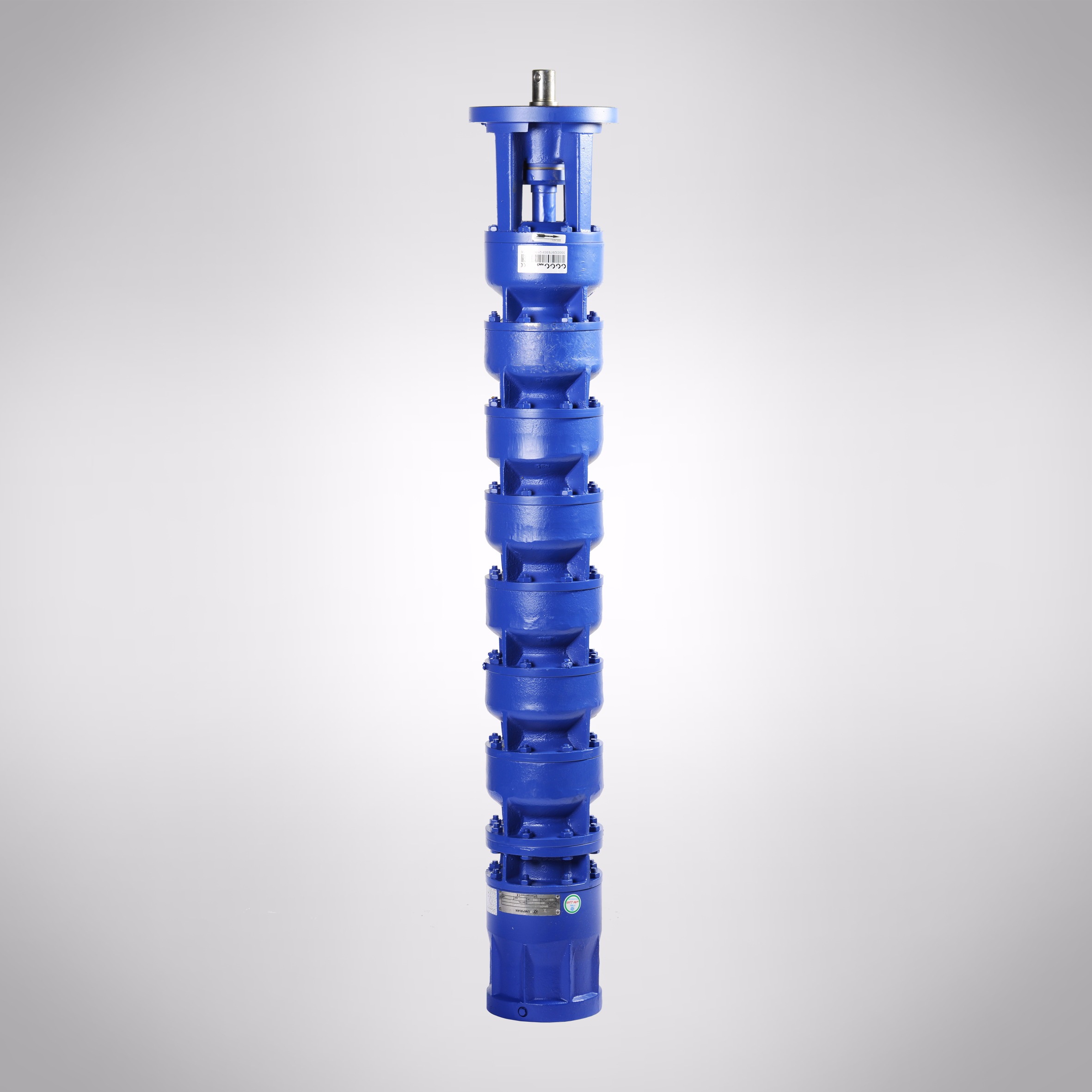 Single or multi-stage, single-flow centrifugal pumps in ring-section design. For vertical and depend on number of stages and to motor size also for angled and horizontal installation. Radial or mixed flow hydraulics with reducible impellers. The stage casings of radial pumps are connected by means of tie bands, these of mixed flow pumps by means of studs.