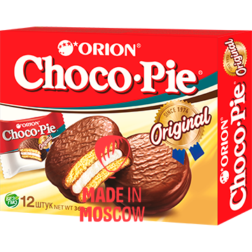 Thanks to its convenient individual packaging Orion Choco-Pie is suitable for all occasions: at home with tea, at school during recess, at the institute, at work, as a treat for any holiday. Patented production technology and individual packaging allow Orion Choco-Pie to stay soft and fresh for a long time.