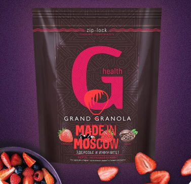 Muesli ready to eat. Ingredients: cereal products (flaked oats, wheat flour, wheat air grains (wheat flour, rice flour, sugar, salt)), sugar, vegetable oil, molasses, freeze-dried strawberries, freeze-dried black currants, freeze-dried raspberries, cocoa powder, acerola vegetable extract.