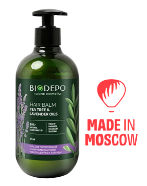 Balm enriched with tea tree and lavender oils strengthens the structure of the hair from root to tip. Biologically active substances in the oils gently care for the scalp, optimize the sebaceous glands and restore the hydrolipidic balance. The unique combination of 12 nut and plant oils included in the balm nourishes the deep layers of the hair shaft, restoring its elasticity and vitality. The gentle texture rinses out easily, making it easy to comb and style.