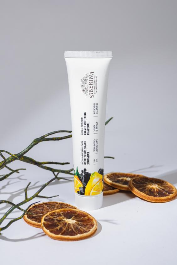 A snow-white smile is the secret of your attractiveness and a sign of beautiful and healthy teeth. But what to do if the enamel has lost its natural color and darkened? The easiest and most affordable way to achieve white teeth at home is the natural whitening toothpaste "Coal". Its formula is designed to gently whiten the enamel and give it a natural shine without damaging the structure. - RDA 110 (toothpaste abrasiveness index) - Prevention of tartar - Protection against caries - Intensive whitening Made from high-quality natural ingredients. Does not contain fluoride, SLS, parabens, triclosan, aggressive abrasives, artificial preservatives, flavors and dyes. SILICON DIOXIDE gently cleans and polishes teeth. ACTIVATED CHARCOAL is a natural adsorbent, removes plaque and makes enamel several tones lighter. EUCALYPTUS ESSENTIAL OIL fights bacteria and inflammation in the oral cavity. ALOE VERA EXTRACT, CHAMOMILE EXTRACT AND ESSENTIAL OIL soothe gums, have a pronounced anti-inflammatory and antimicrobial effect.