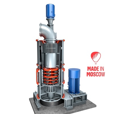 The operating principle of the mill is the grinding of the incoming raw material in vortex flows against the armor plate, in the absence of grinding bodies. The grinding bodies are particles of the processed material itself. All complexes are a complete technological line, controlled by one operator and can be easily integrated into any other technological lines, as agreed with the Customer. It is possible to install the equipment on a movable automobile platform. An important feature of the mills is the possibility of simultaneous drying and grinding, the humidity of raw materials can reach up to 50-60%.