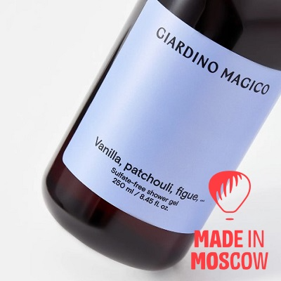 GIARDINO MAGICO Sulfate‑Free Shower Gel delivers a sensorial and caring cleanse: effective yet mild surfactants, aloe vera for nourishment, oat extract for a velvety feel, and lactic acid to maintain skin’s natural balance—finished with an elegant Vanilla‑Patchouli‑Figue scent for a comforting shower ritual.