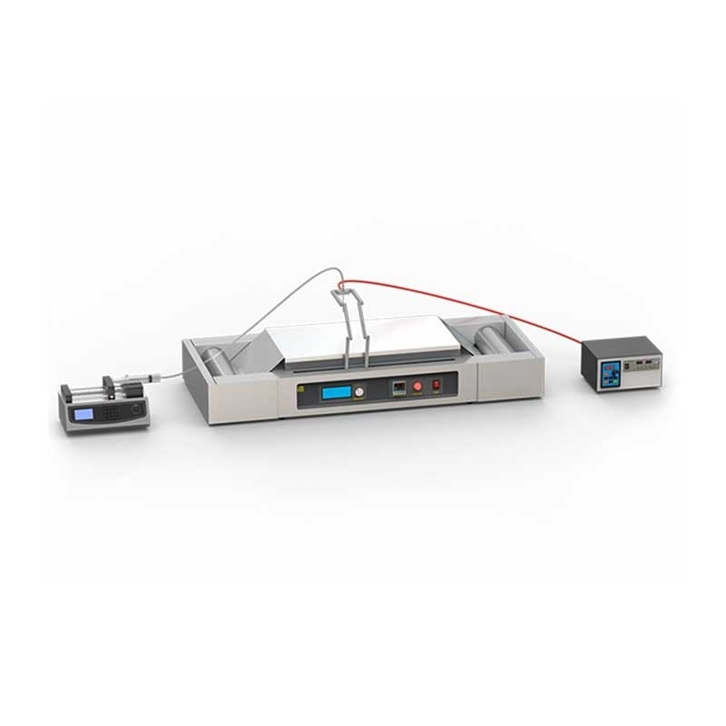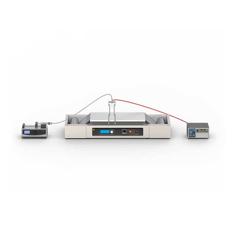 CY-ESC-R2R is a bench-top electrospinning system with automatic r2r substrate feeding and retrieving unit. The syringe pump that renders a smooth and uninterrupted flow enabling uniform spinning. The high voltage power supply delivers 0-50 kV output voltage range with a maximum current capacity of 1 mA. Heatable vacuum bed assists coating bake-out before collecting. Such system provides an attendant workflow for nanofiber spinning, coating bake-out, and collecting.