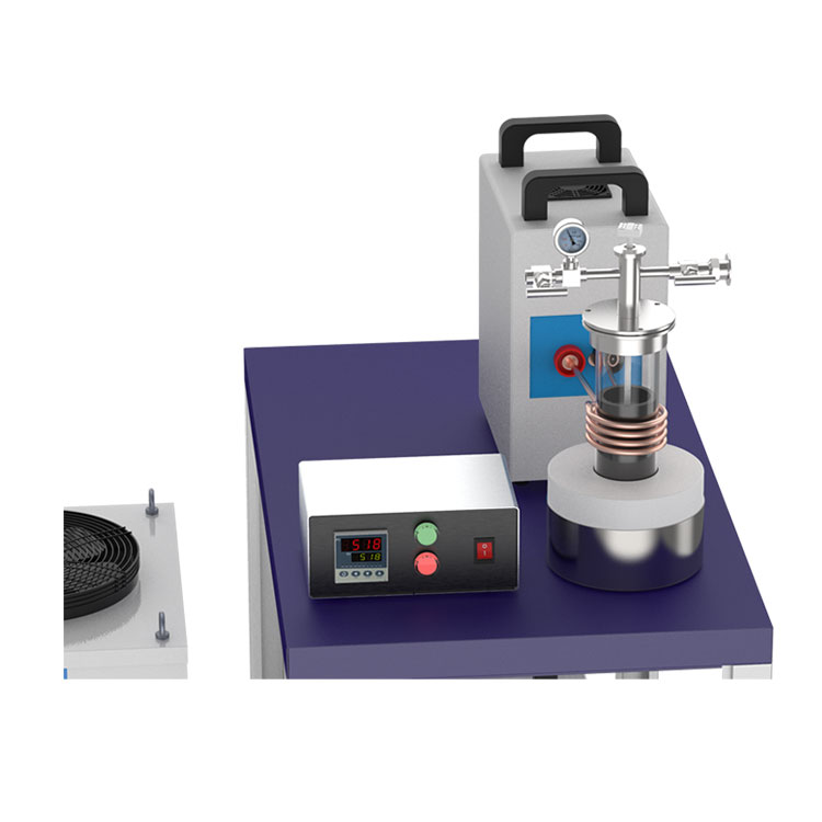 CY-25VIM is a small vacuum split induction heating/melting system with complete accessories, including a 15KW induction heating power supply, Quartz Tube with Flange & Valve, Graphite Crucible & Refractory Assembling, 4L/m Recirculating Water Chiller, Vacuum Pump, and Mobile Cart. It is an ideal tool for researching new metallic alloys with both melting points < 2000ºC and quantity < 500g.