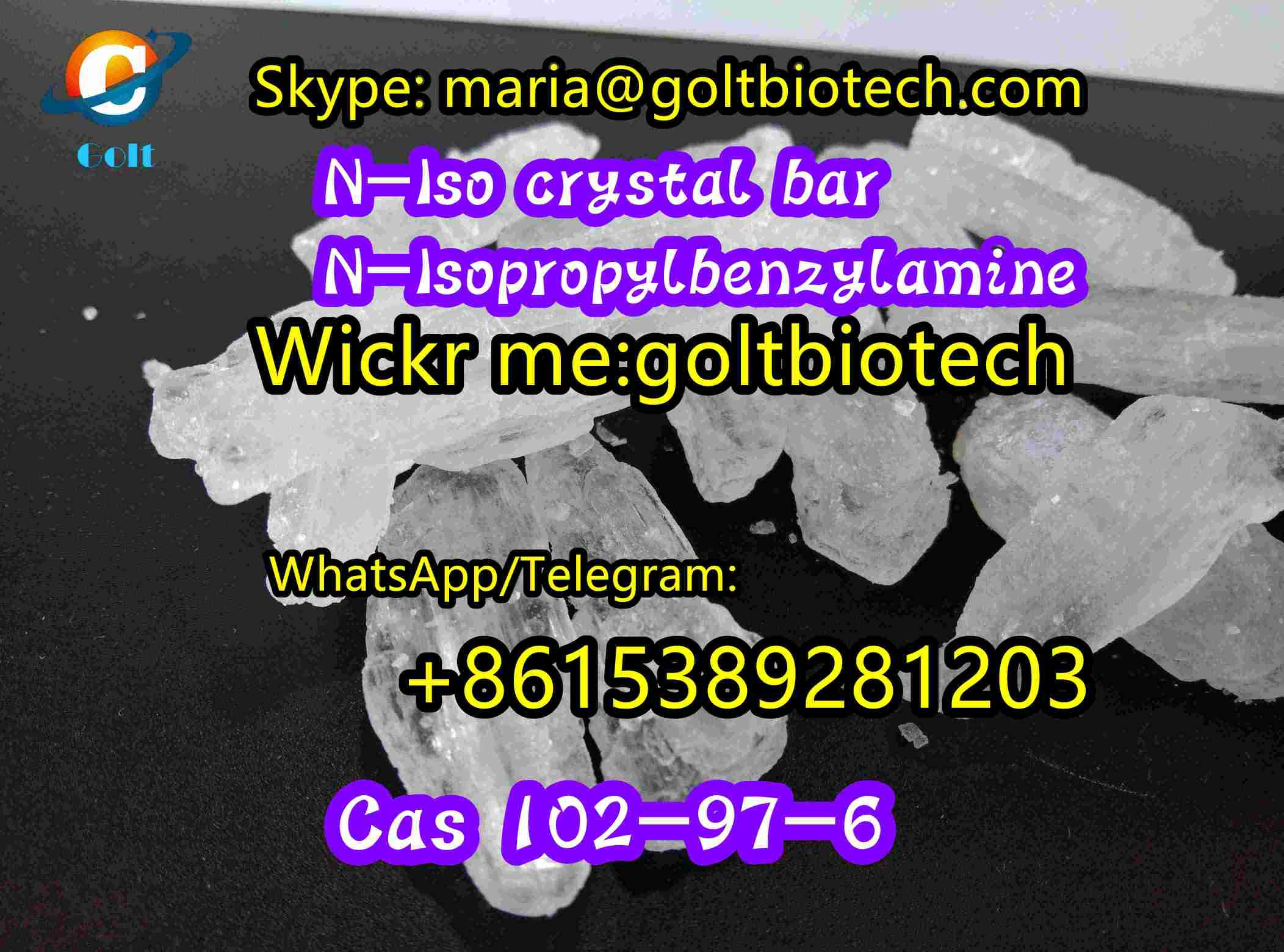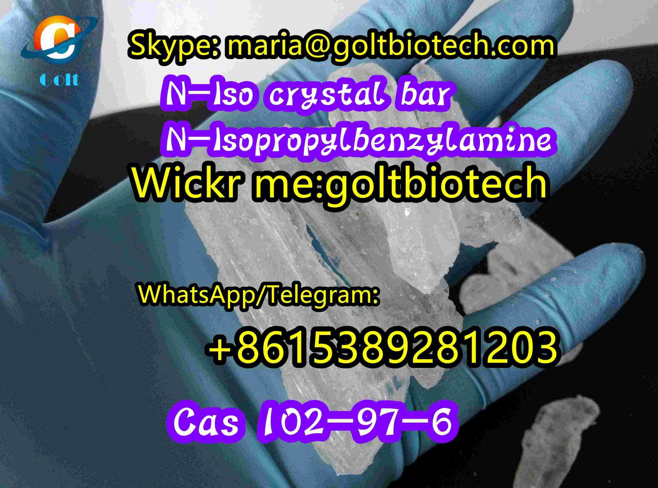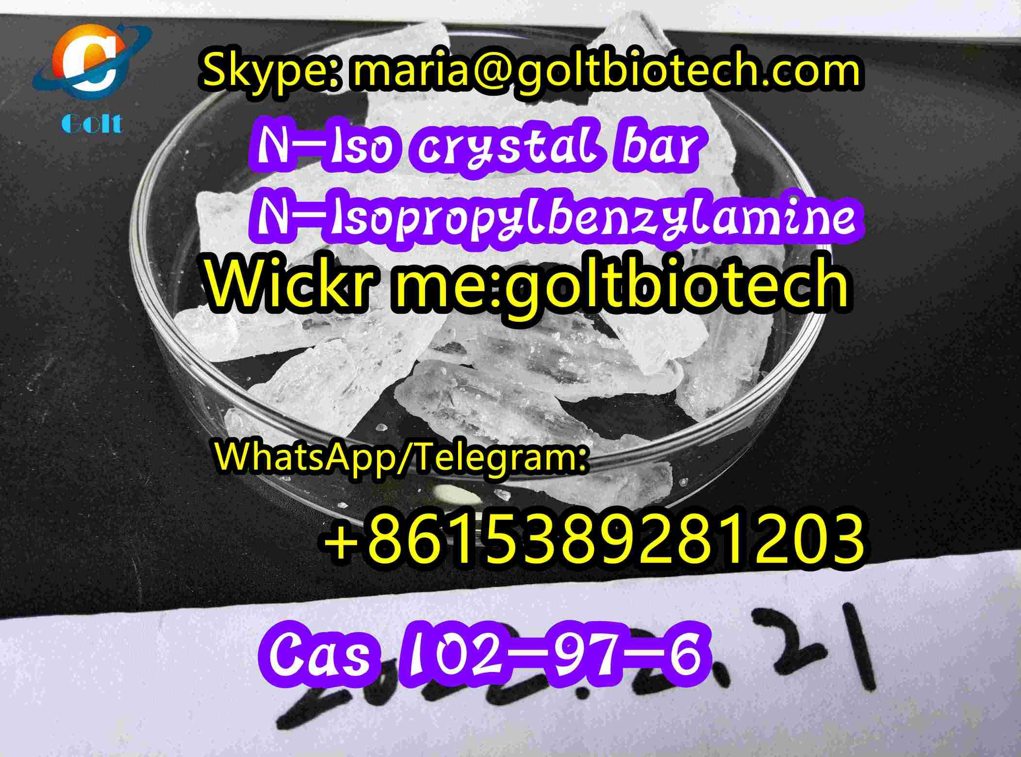 Wickr me:goltbiotech Whatsapp/telegram:+8615389281203 Product name: N-Isopropylbenzylamine Other name: Benzylisopropylamine; N-(Phenylmethyl)propan-2-amine; Isopropylbenzylamine; N-Benzylpropan-2-amine; N-(1-Methylethyl)-benzenemethanamine Cas No.: 102-97-6 Appearance: Transparent Crystal bar Sampl...