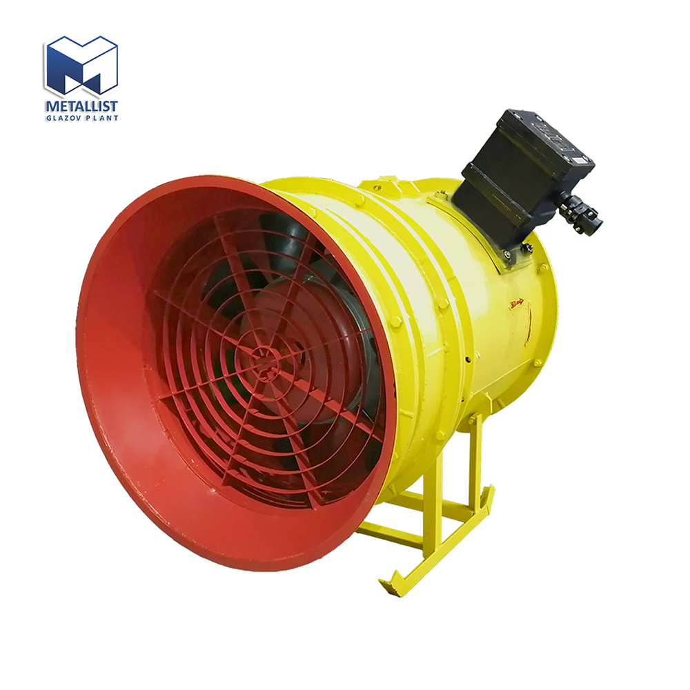 Explosion Proof Axial Mine fans (ATEX mine fans) for local-ventilation are used for safety work in coal and ore mines dangerous by gas or dust. Explosion-proof removable motor 25 kWt. Capacity 7 m3/second. Pressure 2500 Pa. Rated diameter 630 mm.
