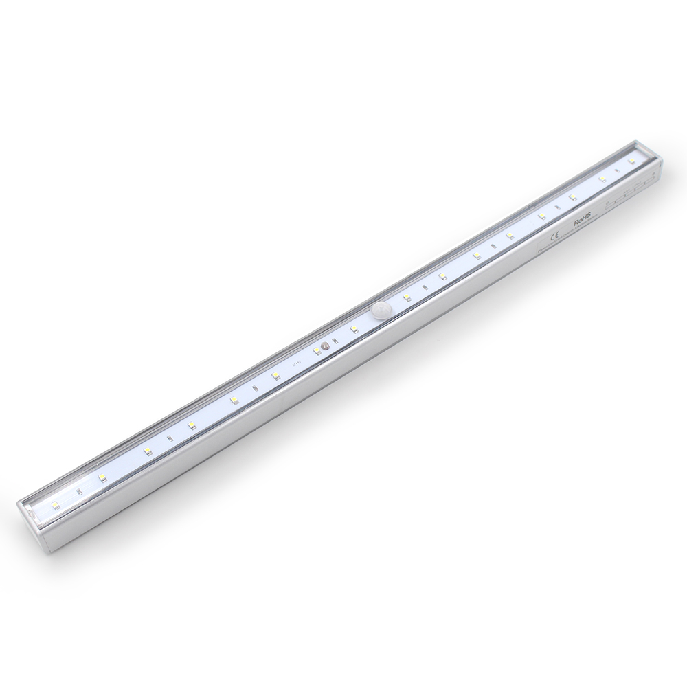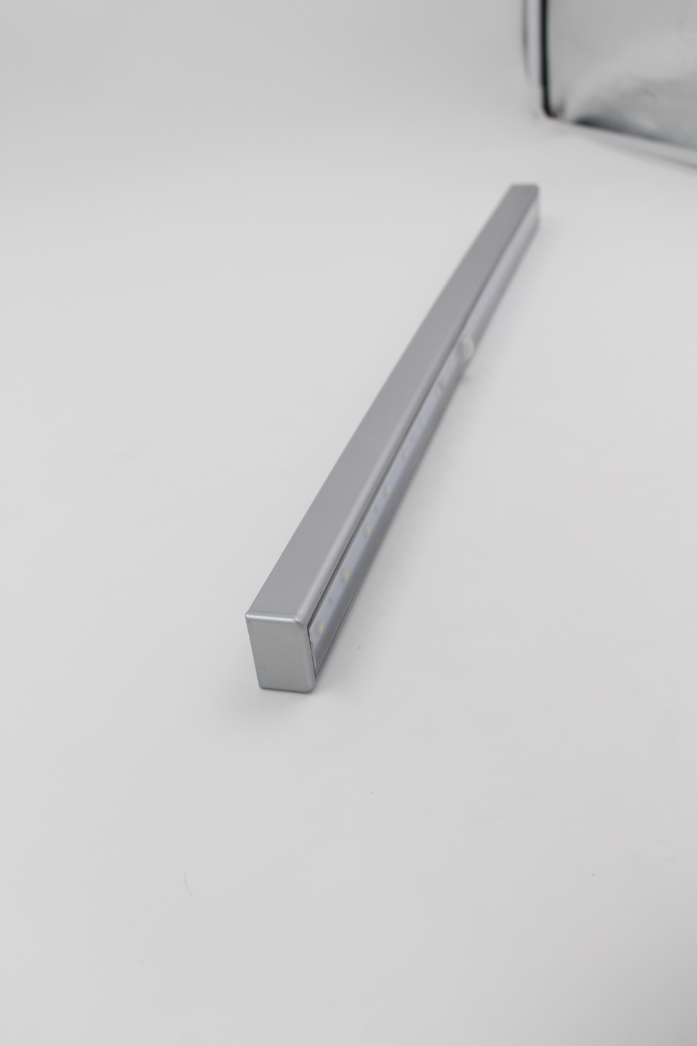 1.LED QTY:SMD3528, 12pcs 2.Light color: white 3.Material:plastic 4.Size:500*30*17.6mm 5.Power:5pcs AAA batteries 6.Human body sensor+photosensitive sensor 7.Installation:snap joint assemblies