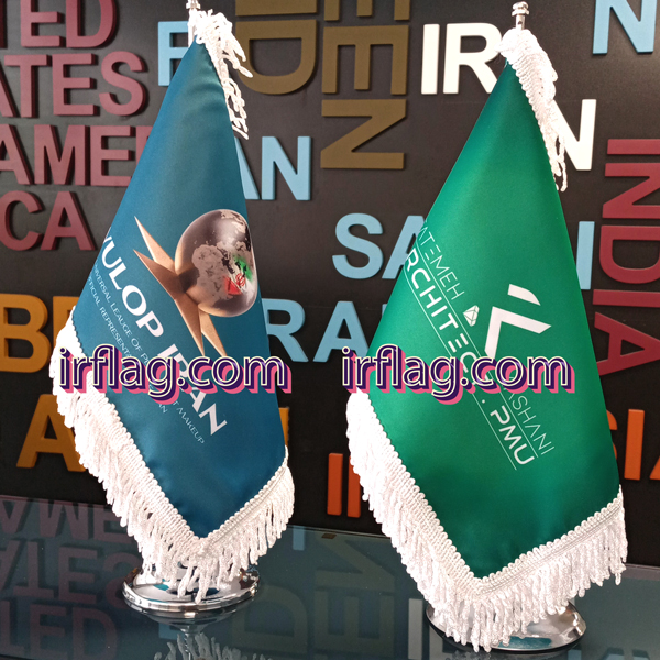 Table flag The desktop flag is a product for advertising your organization and business logo. The desktop flag is installed as a complement to the ceremonial flag and on the staff and employees' desks. Satin, velvet, suede fabric is used to produce table flags. Satin fabric is in high variety and th...