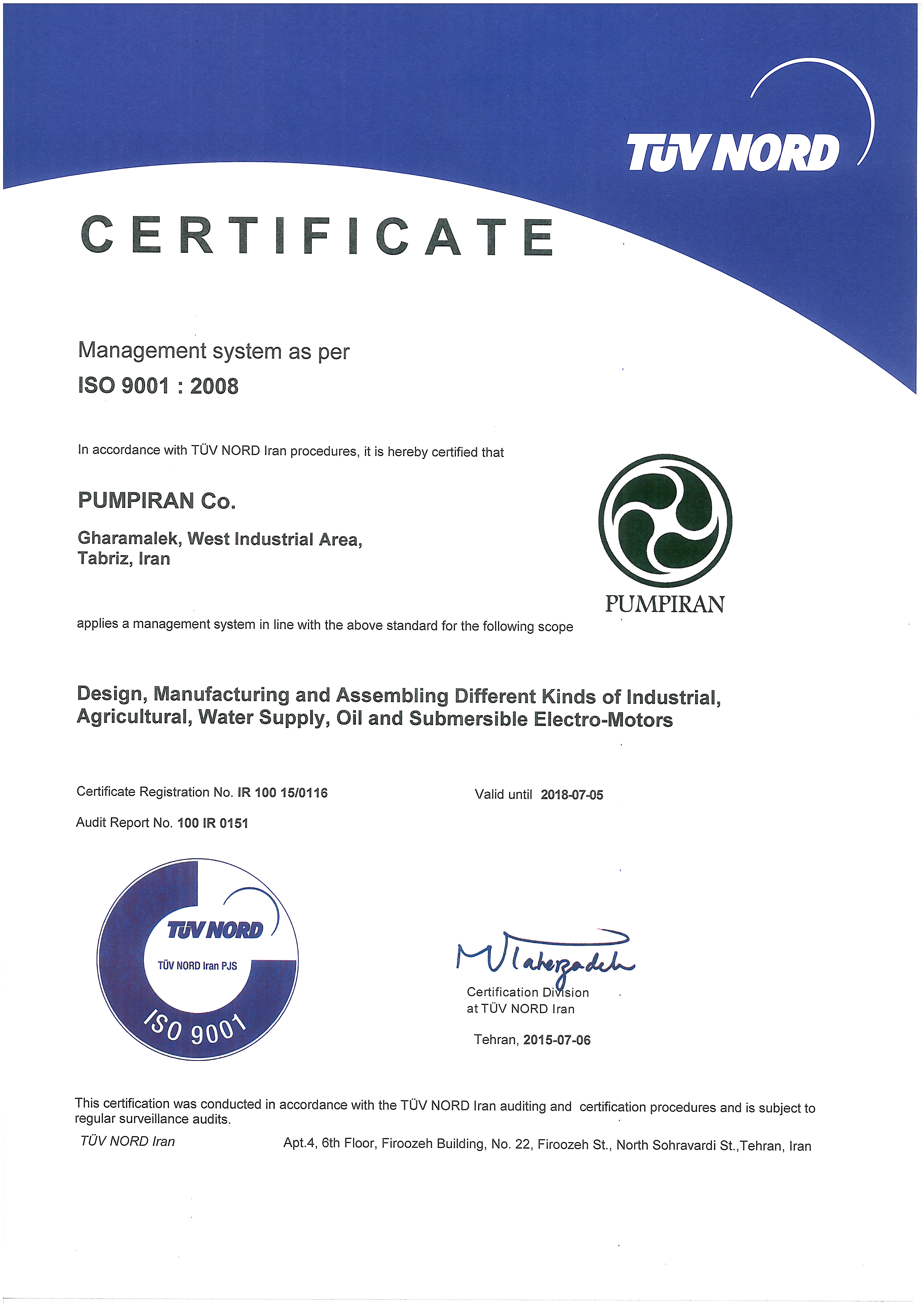 Pumpiran was established in 1973 for producing various kind of pumps for agricultural and industrial purposes. Since the supervisory board of company has endeavored to produce the commodities according to international standards and high quality to present internal and external markets, therefore they decided to cooperate with one of the famous manufacturing companies in pump fields .So they made an agreement with KSB company to transfer the technology of designing and producing various kinds of pumps. Enjoying this technical knowledge, Pumpiran produces its product with international standards and present the market.