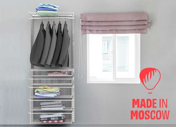 این مدل جا لباسی علاوه بر قابلیت آویزان کردن لباسها،دارای مکانی برای نگهداری وسایل شما به صورت تا شده است. این جا لباسی یک راه حل ذخیره سازی راحت، کاربردی و سیار است. با این وسیله هر جعبه، لباس قدیمی یا فصلی را می توان از دید پنهان کرد. این نوع سیستم های کمد لباس را می توان در بالکن، اتاق زیر شیروانی، گاراژ، دفتر قرار داد. این جا لباسی زیبا همچنین با این واقعیت متمایز می شود که همه چیز در آن به وضوح قابل مشاهده است.