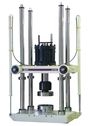 دستگاههای کشش و فشار محوری اگسیال ( خستگی ) که در دنیا به بنام Axial Fatigue Machine معرف می باشد ، که در ظرفیت های 1 تا 200 تن قابل ارائه بوده .طراحی و ساخت این دستگاه ها در دنیا بسیار پیچیده بوده و تجربه و تکنولوژی بسیار بالایی برخوردار می باشد ، عملکرد و مکانیزم این دستگاهای سرووهیدرولیک ( با استفاده از شیرهای سرو Servo Hydraulic Valve ) بوده و از الکترونیک و نرم افزار خاص نسبت به دستگاههای کشش استاتیک برخوردار بود ، پاسخ فرکانسی و سمپل گیری و کنترل سیستم در این دستگاه بسیار بالا بود ، در هر ثانیه چندین سیکل حرکتی دستگاه را کنترل می کند ، این دستگاه قابلیت کنترل این حجم دیتا را داشته و در 200 میکروثانیه کلیه اطلاعات کاملا کنترل شده به دستگاه ارسال می گردد .فرکانس کاری دستگاههای دینامیک براساس سرعت حرکت خطی ، میزان جابجایی و ظرفیت دستگاه مشخص می گردد این شرکت توانایی ساخت تا فرکانس 100 هرتز را داشته ، دستگاه های سری SAF مجهز به نرم افزار قدرتمند کنترلی بوده که قابلیت تعریف سیکل های مختلف بر اساس نیرو کنترل و یا جابجایی کنترل بوده و قابلیت انجام این سیکل ها با شکل موج های سینوسی ، مربعی ، دندانه اره ای ، مثلثی و تلفیقی و یا اتفاقی را دارد ، که با توجه به قابلیت های نرم افزاری می توان مقاومت به ترَک ایجاد تَرَک ، - مجهز به جک دو طرفه اعمال نیرو (Actuator) با سطح اعمال فشار مساوی.