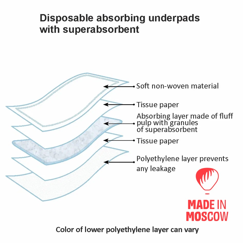 • سطح زیراندازها که از مواد نبافته مرغوب ساخته شده است به سرعت مایع را به لایه های داخلی محصول منتقل می کند.