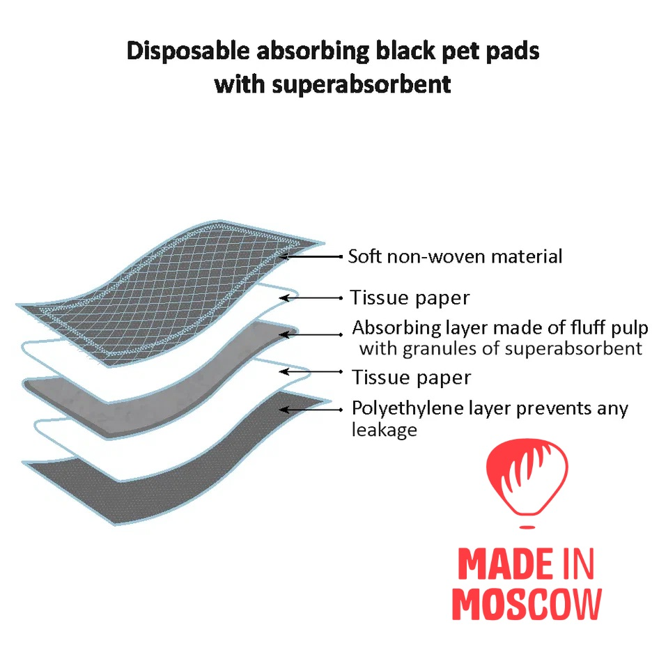 پدهای یکبار مصرف مشکی حیوانات خانگی Dobrozveriki سوپرجاذب، برای هر صاحب حیوان خانگی مفید خواهد بود!