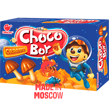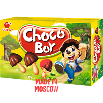 شرکت Orion که در سراسر جهان شناخته شده است، در بسیاری از کشورها، در فروش این نوع کیک ها بی رقیب و پیشتاز است. Choco Boy شکل قارچی بامزه ای با کلاهی با روکش شکلاتی و پای بیسکویتی ترد دارد. طعم روشن و بسته بندی جذاب با شخصیتی شیطنت آمیز، Choco Boy را به مطلوب ترین غذا برای کودکان تبدیل کرده و فضای شاد و مفرح را ایجاد می کند.
