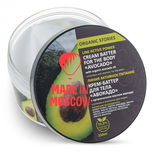 کرم کره بدن "تغذیه و ویتامین برای پوست" با روغن آووکادو. حاوی 25٪ روغن، به تغذیه پوست و بهبود ظاهر پوست و افزایش کشسانی آن کمک می کند. کرم دارای بافت غلیظ است، اما در عین حال به خوبی جذب پوست بدن می شود و رد چربی باقی نمی گذارد. به عنوان مراقبت روزانه برای همه انواع پوست توصیه می شود. حاوی سیلیکون نیست.