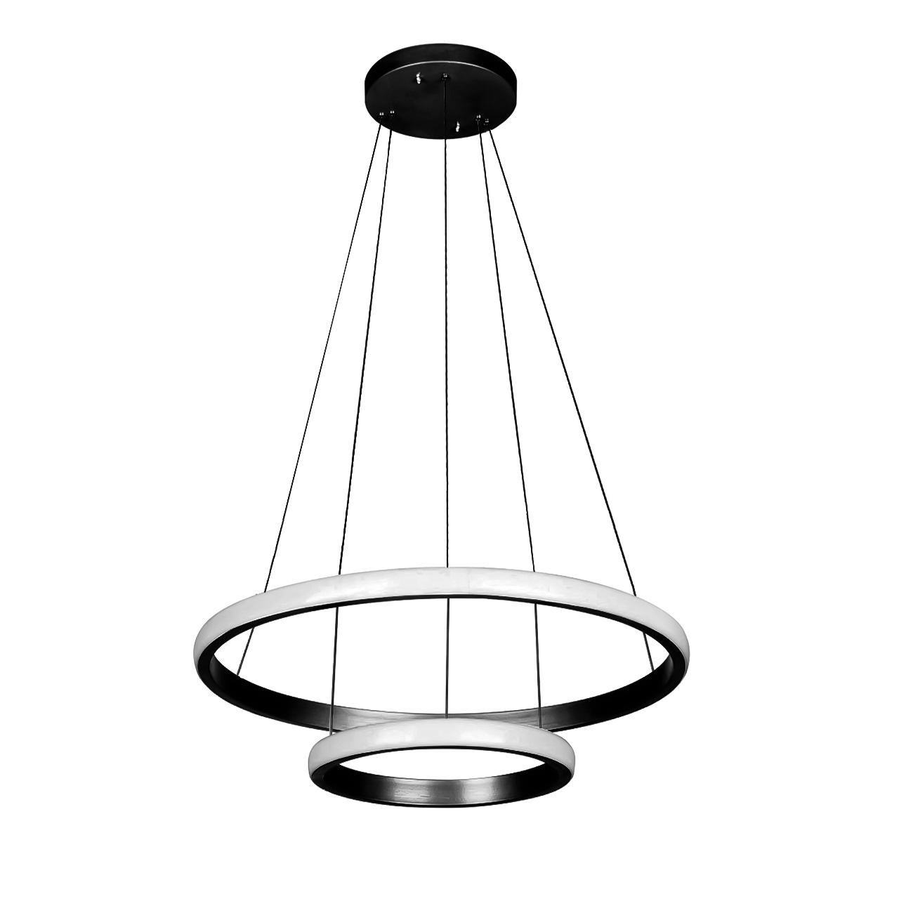 چراغ آویز دو شعله چشمه نور کد L6375 شامل دو حلقه فلزی به قطر 40 و20 سانتی متر با پوشش رنگ الکترواستاتیک می باشد.