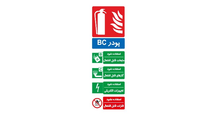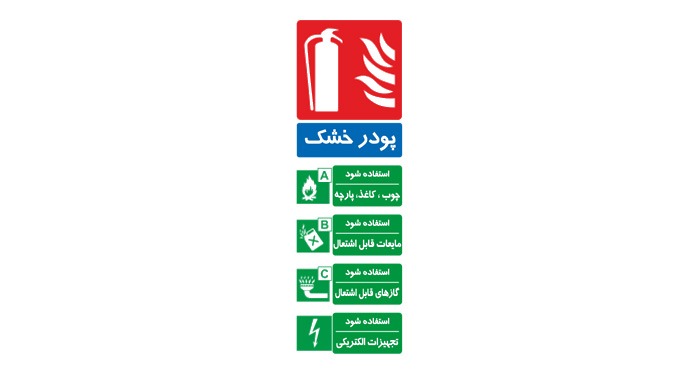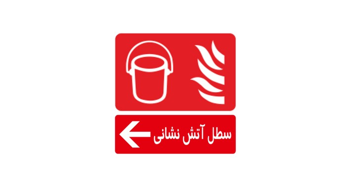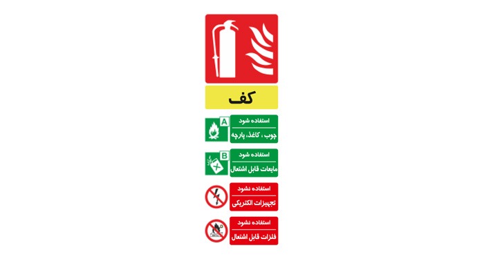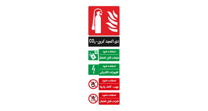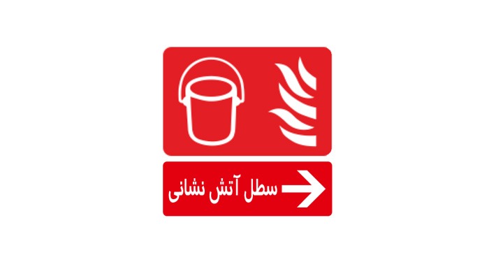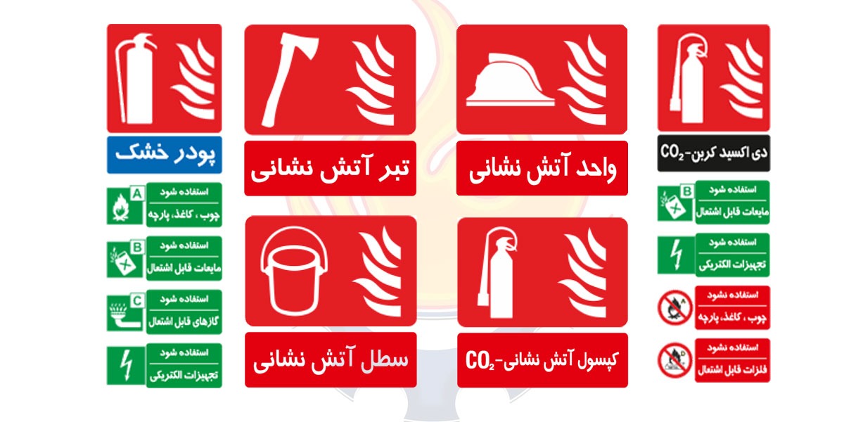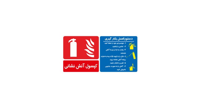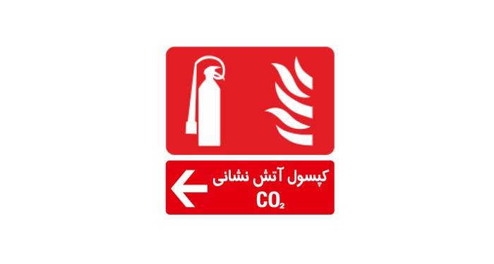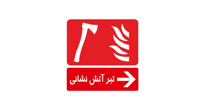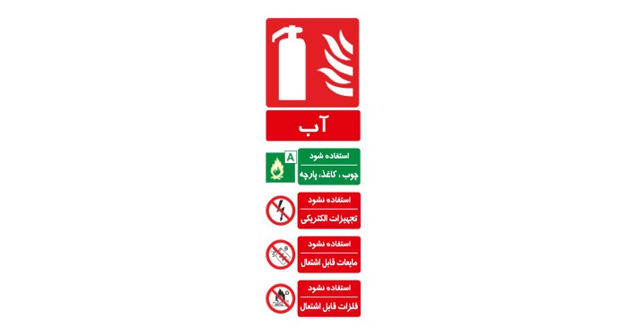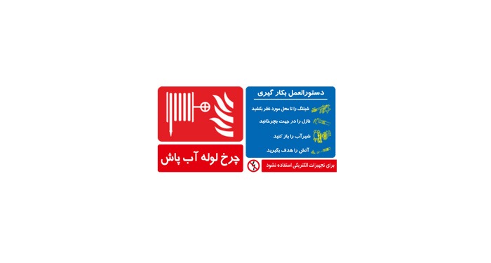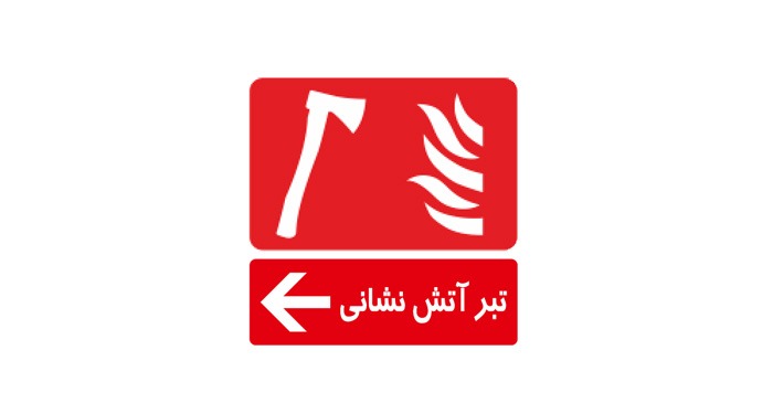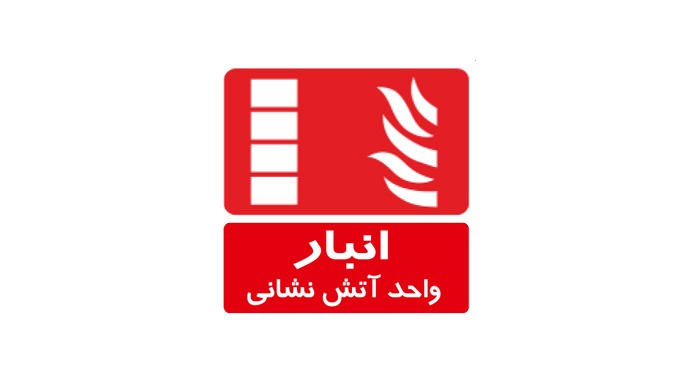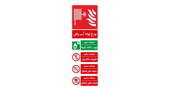 علایم ایمنی آتش نشانی مستطیل قرمز رنگ به همراه یک نماد سفید رنگ درون آن که محل تجهیزات مقابله با آتش را نشان می دهد.