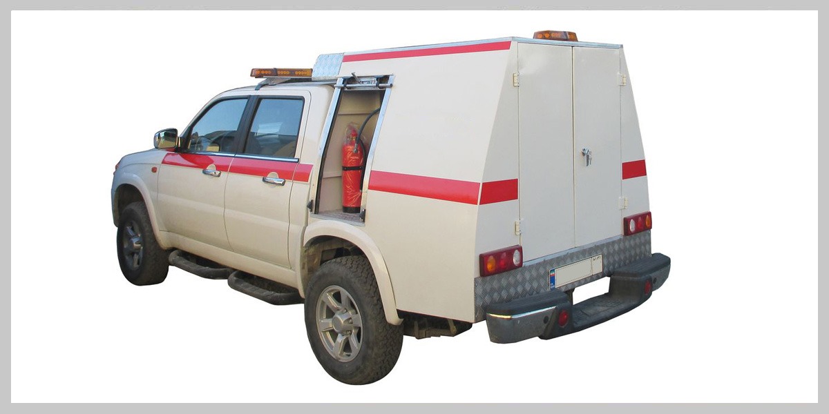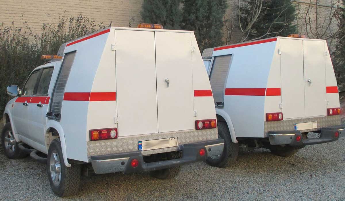 کابین : پروفیل های استاندارد 40×40و 20×40، پوشش دیواره ST37،کف و سقف ورق های آلومینیوم آجدار 2و3 میلیمتر، 2 عدد درب کرکره ای از جنس آلومینیوم آنودایز شده به همراه 2 عدد درب دو لنگه در قسمت پشت خودرو