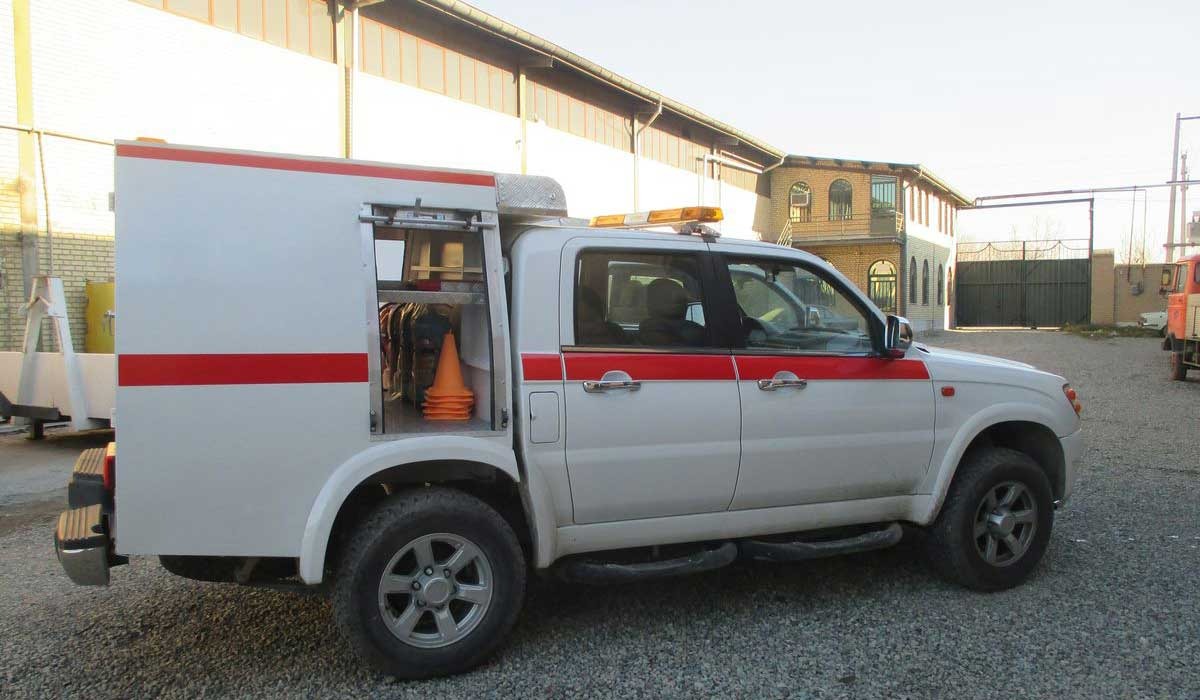 تجهیزات:خا موش کننده CO2 ، پودر و گاز و پودر آب، تبر، دیلم ، قیچی قفل بر، مخروط ایمنی، وینچ برقی یک تن