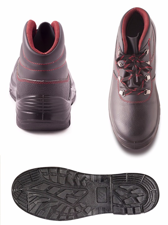 رویه کفش از چرم گاوی چاپی 2میلی،سرپنجه آهنی با استاندارد ملی ایران مقاوم به 200 ژول ضربه پذیری،زیره پی یو،مقاومت زیره در برابر حلالهای نفتی و روغنی ،تاییده وزارت کار و امور اجتماعی، آستری راشل ،سایز بندی کفش استاندارد از 39-46،سبک راحت و انعظاف پذیر