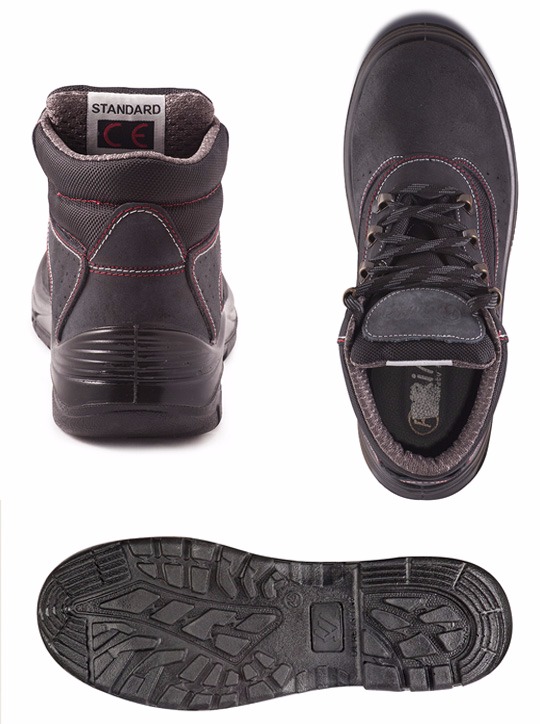 رویه کفش از چرم جیر سفارشی سرمه ای 2میلی،سرپنجه آهنی با استاندارد ملی ایران مقاوم به 200 ژول ضربه پذیری،زیره پی یو،مقاومت زیره در برابر حلالهای نفتی و روغنی ،تاییده وزارت کار و امور اجتماعی، آستری راشل ،سایز بندی کفش استاندارد از 39-46،سبک راحت و انعظاف پذیر