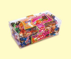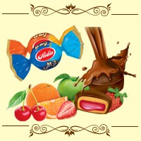 تافی با مغز مارمالاد میوه و روکش کاکائو و تافی با مغز قهوه و روکش کاکائو