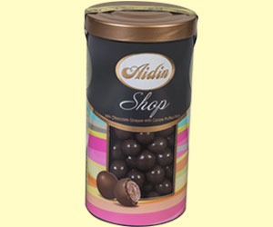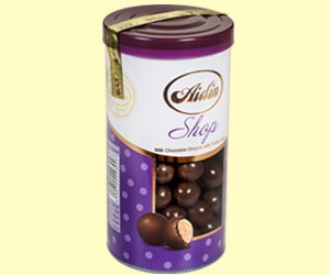 شکلات شیری با مغز برنجک تولیدی آیدین، در وزن های 230، 250 و 840 گرمی