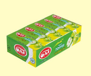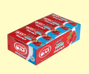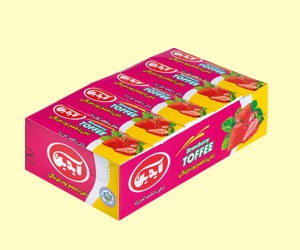 تافی چهار تایی با طعم موز، قهوه، توت فرنگی، گیلاس، زغال اخته و پرتقال