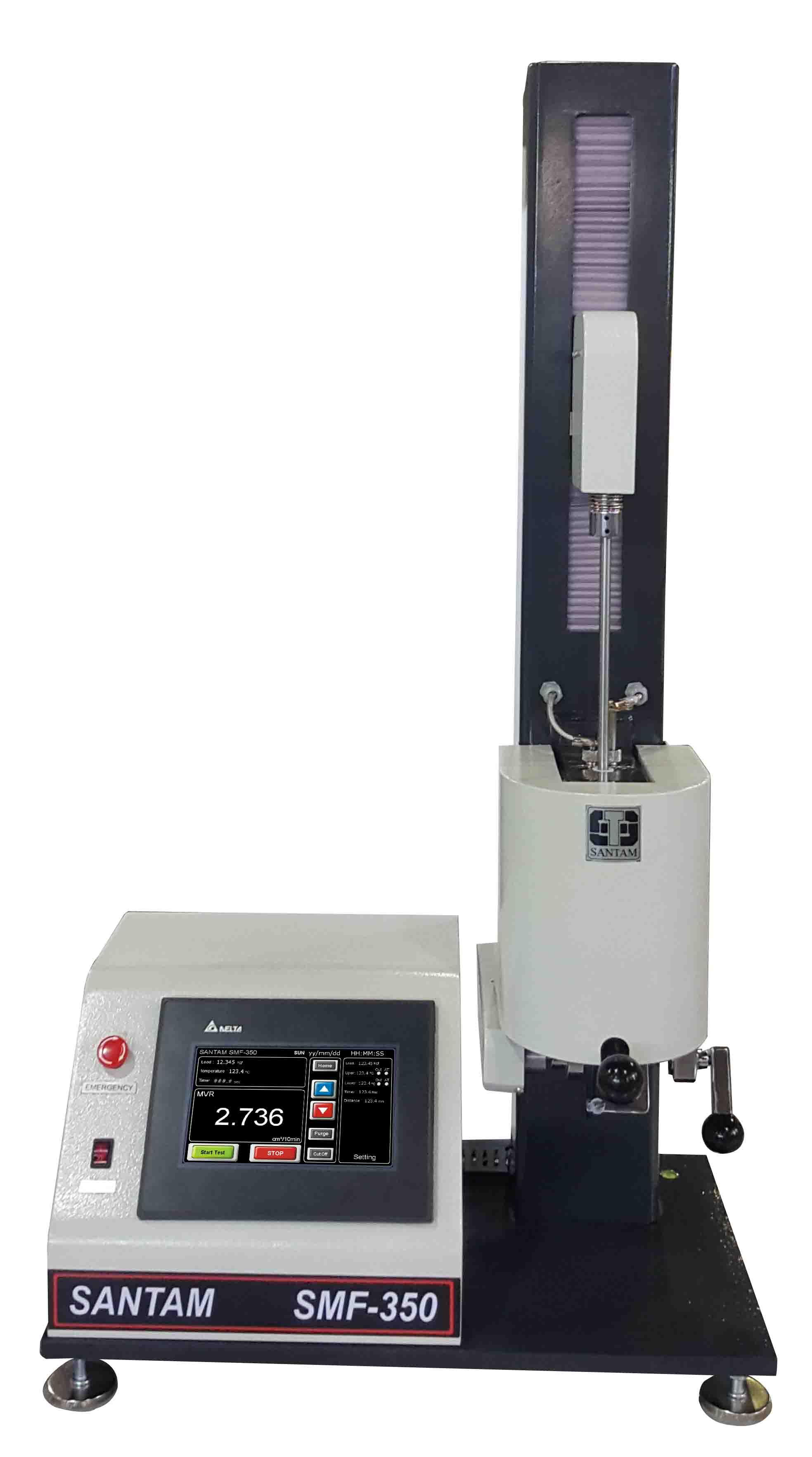 دستگاه کاملا اتوماتیک جهت تعیین و بررسی شاخص جریان مذاب جرمی و حجمی پلاستومرها از طریق اکسترود کردن آنها در حالت مذاب از میان یک دای استاندارد در دما، بارگذاری و شرایط استاندارد می باشد که نتیجه ی آزمون به عنوان یک مشخصه ی فیزیکی گرانول، به متخصصین پلیمر و کاربران ماشینآلات صنعت پلاستیک کمک می کند تا شرایط بهینه را برای فرآیند تولید فراهم کنند.