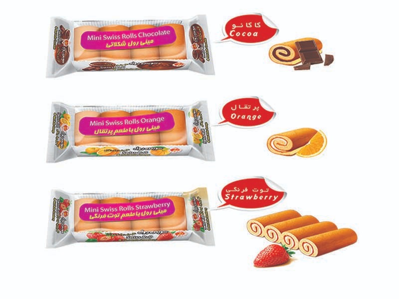 کیک مینی رول 4 حبه کاکائویی، پرتقالی و توت فرنگی